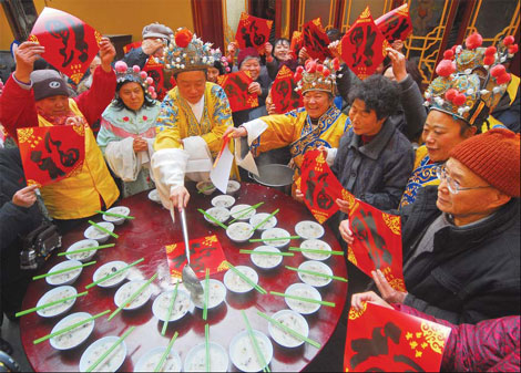 Chinese people start their preparations for the Spring Festival more than 20 days early. The 12th lunar month in Chinese is called La Yue (腊月 là yuè), so the eighth day of this lunar month is La Yue Chu Ba (腊月初八 là yùe chū bā), or Laba (腊八 là bā). The day is also known as the Laba Rice Porridge Festival. The Laba this year was Jan 1 - or New Year's Day.