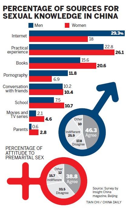 "First, the purpose of sex has changed. Giving birth is no longer the sole valid reason. Second, there is a strong desire for sex from adolescence, before people reach marriageable age, and adolescence tends to begin earlier nowadays," Li said. "Also, when the crime of 'hooliganism' was removed from the Criminal Law in 1997, sex out of wedlock went from being a crime to just a personal choice.