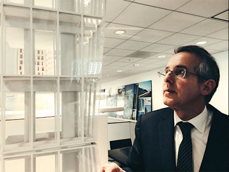 | Gene Schnair says his architecture firm Skidmore, Owings & Merrill is ready to roll into the next stage in China after 20 years designing 150 projects and getting another some 150 in the pipeline there. Qidong Zhang / China Daily |