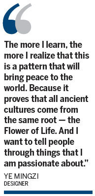Apart from jewelry, clothing and eyewear, Ye - in the spirit of her family roots, especially her mother - wants to promote the power of Flower of Life in areas such as leather ware and furniture by venturing out of her studio and working with more designers and labels.