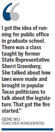 | Gene Wu, Texas State Representative, is confident that he will win re-election in December. May Zhou / China Daily |