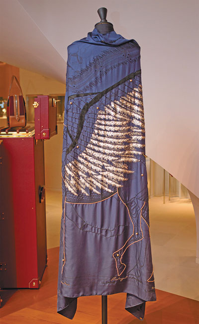 | The handmade silk scarf, Pegase d'Or, features a print of the mythical winged horse. |