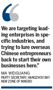 "We are targeting leading enterprises in specific industries, and trying to lure overseas Chinese entrepreneurs back to start their own businesses here," said Ma Weiguang, Party secretary of the zone.