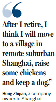 "After I retire, I think I will move to a village in remote suburban Shanghai, raise some chickens and keep a dog. I may also rent a small patch of a paddy field," said Hong.