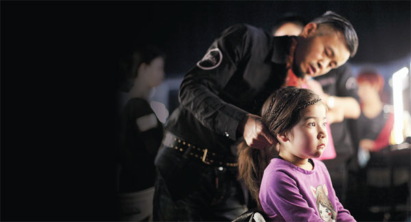 | A young girl has her hair done ahead of a fashion show. There is a growing demand for high-end children's fashion. Photos Provided to China Daily |