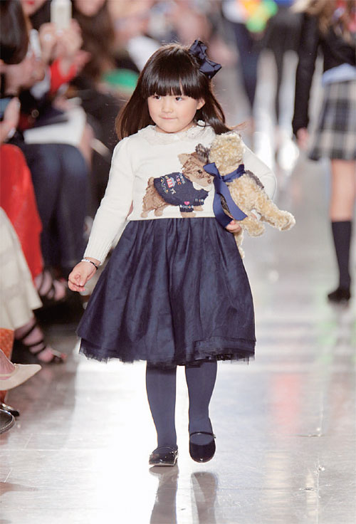 | Angela Wang who gained fame in a reality show walks down the stage of Fall 2014 Ralph Lauren Children's Runway Show in New York. |