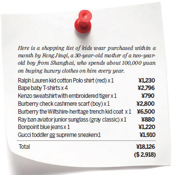 "The high-end kid's market will get larger in the future, with more luxury items being produced for their functional and applicable advantages at an acceptable price," she said. "This will also open the door for newly launched domestic kids' brands."