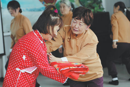 | More than 50 Japanese citizens left in China by their parents after Japan's surrender in 1945 stage a self-penned play, Chinese Mother, at a nursing home in Beijing in July. Zou Hong / China Daily |