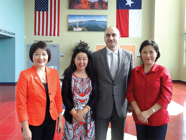 | Perfect harmony - Houston Accompanied by Nancy Li (second from left), president of US-China Peoples Friendship Association, Chinese education consul Duan Fenghua (left) and Xu Baiyu (right) visit the Houston Harmony Public School system on Dec 11 and were received by CEO Soner Tarim. The consuls toured the STEM lab and learned about the Harmony system's innovations in primary education. Provided to China Daily |