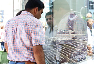 | Mike Netka of Leon Diamonds on West 47th Street in New York City said about half of his customers in the summer are Chinese tourists. Judy Zhu / For China Daily |