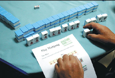 | An expat learns how to play mahjong at an enthusiasts'workshop in Beijing. Wang Zhuangfei / China Daily |