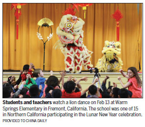 At Mission Valley Elementary, where Luo's 9-year-old son Arron is a third grader, principle Denise Mapelli dressed herself in a crimson traditional Chinese costume and joined a group of students and parents of Asian origin for a five-minute fashion show on Jan 26.