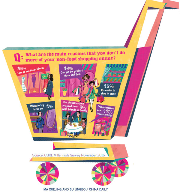 A report by global real estate advisory firm CBRE China found that tech-savvy millennials do like to shop online, but only physical retail, particularly shopping centres, can provide them with the experiences and social elements they crave.