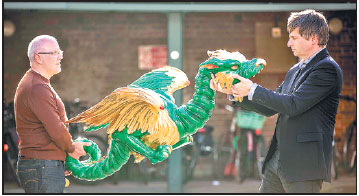 Craig Hatto (right) examines a prototype of the finished dragon.Provided To China Daily |