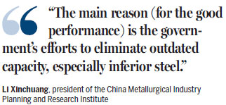 "The main reason (for the good performance) is the government's efforts to eliminate outdated capacity, especially inferior steel," said Li Xinchuang, president of the China Metallurgical Industry Planning and Research Institute.