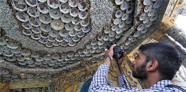 Wu Shuchun, 2nd from right, poses with other brigade members in front of the awards they've won in Shantou village, Dadeng Island in East China's Fujian province. [Photo provided by Xiamen Evening News to chinadaily.com.cn] |