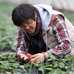 Wang Mian, 33, closely examines a crop of tomatoes growing inside a vast greenhouse in a Beijing suburb. The tomatoes are a healthy green, and some have started turning red.