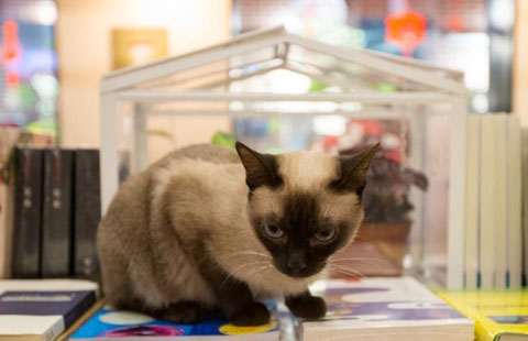The special bookstore is a joint venture between Xinhua Bookstore and a kitty café. More than 20 pure-bred cats can be seen in this store and they seem meek to customers.