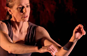 Chinese dancing master Yang Liping reacts during a press conference for her dance drama The Peacock in Kunming.