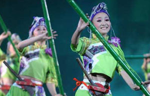 Artists perform in an epic dance titled "A Millenium's Life in the Mountains" at the Meilanfang Theatre in Beijing.
