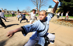 Shaolin Kung Fu masters teach Shaolin Kung Fu at Stanford University in California, the United States on March 9, 2012.