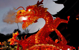 A man walks past red lantern decorations for the upcoming Chinese New Year in Yuyuan Garden, downtown Shanghai.