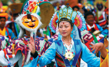 Tibetans celebrate the 60th anniversary of the region's peaceful liberation with a grand parade in front of Potala Palace on Tuesday.