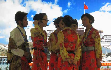 The Exhibition Marking the 60th Anniversary of the Peaceful Liberation of Tibet is hold at the Cultural Palace of Nationalities in Beijing.