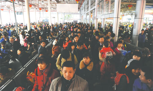 Passengers returning home at the end of celebrating Spring Festival check in at the Railway Station in Southwest China's Chongqing municipality on Monday. Photo / Xinhua |