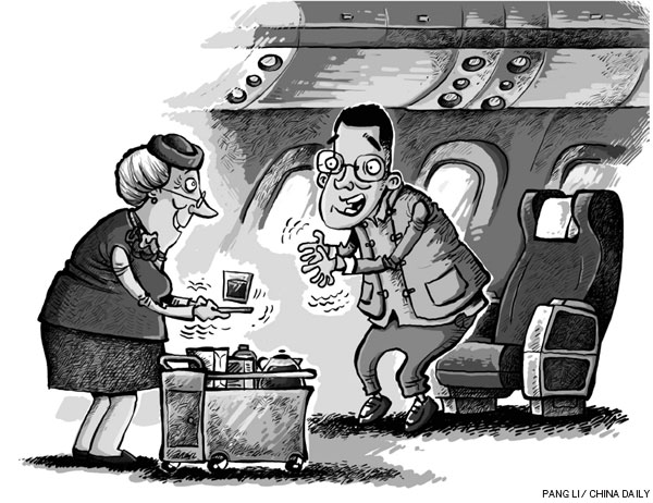 Maybe it was the slight shaking of her hand that triggered my sentiments. But no, even if she had been steady, I still would have been uncomfortable. The notion that someone old enough to be a grandfather or grandmother walking down an aircraft aisle, which could be caught in sudden turbulence, and serving younger passengers would utterly overturn the Confucian respect for senior citizens.