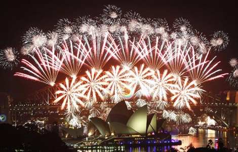 World rings in 2012 and bids adieu to a tough year
