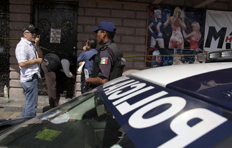 At least eight people were killed when six armed men burst into a bar late Monday in downtown Monterrey.