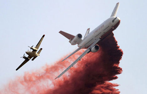 Firefighters battled wildfires across the US West on Tuesday, including a massive out-of-control blaze that has destroyed at least 60 homes.