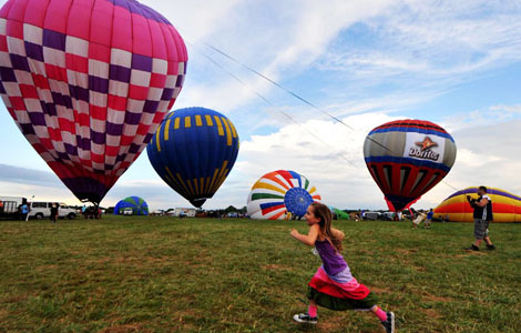 Hot air balloons are seen during the 30th annual New Jersey Festival of Ballooning in Readington, New Jersey July 28, 2012.