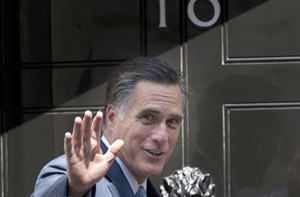 By the end of Mitt Romney's first full day in London on Thursday, he had been the target of a verbal jab from the British prime minister and mocked by the city's mayor, who spoke before a cheering crowd.