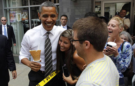 Obama charms voters with ice cream