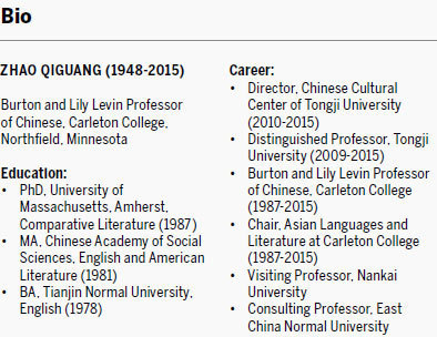 Liu Kang, director of the Duke China Research Center in Raleigh, North Carolina, and a close friend of Zhao Qiguang, described him as a "low-profile cultural ambassador".