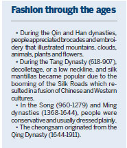 Bao Mingxin, a fashion culture research professor from Donghua University's fashion and design school in Shanghai, said there are several factors behind the growing trend of wearing Chinese-style clothing today and among them is a sense of national pride that stems from the rapid development of China's economy and its growing stature in the international scene.