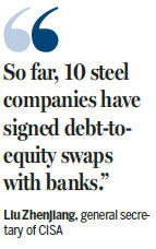 "So far, 10 steel companies, including China Baowu Steel Group Corp Ltd, have signed debt-to-equity swaps with banks," Liu said. "The China Banking Regulatory Commission will bring together related financial institutions and typical steel enterprises to implement relevant issues in the near future."